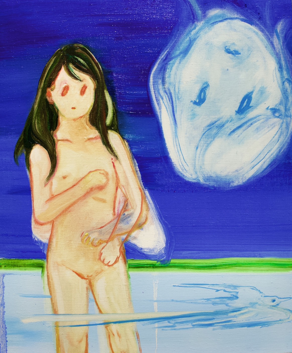 日常における疑念や気づき、私たちが日々生きていく中で向き合ってく曖昧で微妙な内面の運動を捉え、かつ幻想性を交えた絵画化するフカミエリの姿勢は、キルヒナーやムンクといった表現主義の画家らを連想させるでしょう。